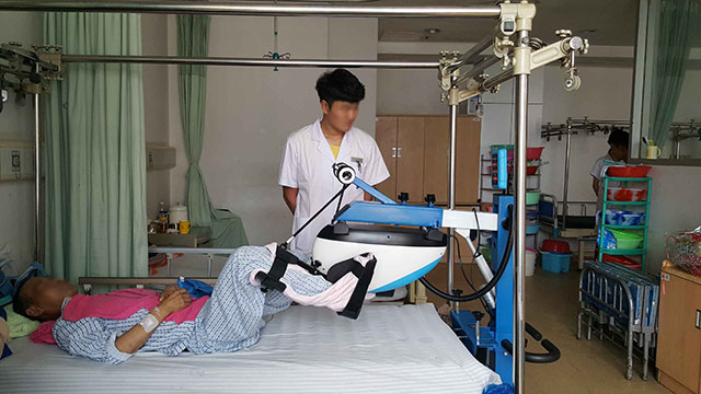 智能下肢康復(fù)器材:智能下肢康復(fù)訓(xùn)練機(jī), 具有患者從完全被動訓(xùn)練階段到主動和被動訓(xùn)練相交叉的助力訓(xùn)練階段到完全的主動訓(xùn)練階段到初期主動力量訓(xùn)練階段的患者康復(fù)過程。
